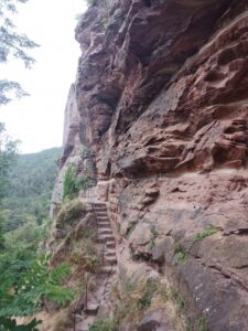 Weiter ging es ….es war relativ kühl und bewölkt….aber zu wandern gut …es gab noch eine kleine Burgruinen Besichtigung….eine andere war gesperrt….dann kam ich schon ziemlich hungrig in Obersteinbach an…laut Wanderführer Einkehrmöglichkeiten…aber erst Mal zum Brunnen Wasser auffüllen… irgendwie hat das mit meinem neuen Pressfilter noch nicht funktioniert….das Wasser kam immer seitlich raus….dann habe ich irgendwann das Problem entdeckt und behoben..der Filter war nicht richtig arritiert…