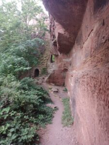 Letzte Nacht habe ich relativ gut geschlafen….nicht gerade bequem auf der Bank, aber ich bin wenigstens nicht runtergefallen 😉. Die Nachtruhe hatte ich dringend gebraucht… Kurz vor 7h ging es für mich heute Morgen los….das Paar lag noch in den Schlafsäcken…. unterwegs kleiner Wald-Himbeeren Snack….dann kam ich an ein Burgen Zentrum….hier war ich schon Mal und auch auf einigen der Burgruinen…leider war das Zentrum noch geschlossen…es war zu früh….schade….da gab es ein Selbstbedienungsrestaurant und ich erhoffte mir was zum Frühstück…ich verbrenne ziemlich viel Kalorien auf so einer Tour und muss eigentlich regelmäßig nachlegen…und so habe ich schon bald mein Frühstück aus dem Rucksack eingenommen…Ravioli aus der Tüte …aus Deutschland mitgebracht..😁 Danach die Blase am Zeh behandelt, anschließend musste ich noch ein kleines Nickerchen machen bis eine ankommende Gruppe Deutsch- Franzosen in der Schutzhütte ihren Umtrunk einnahm….