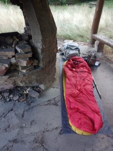 Ich werde an dem Grill unter dem Dach schlafen…riecht etwas nach Feuer 🙂 und ich habe ein schnelles Nachtlager ohne Zelt….Mal schauen, wie es heute wird…. heute Nacht träume ich vielleicht von Croissants 😁….